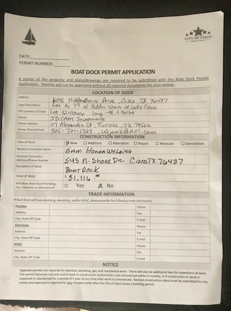 | Lot 50 Musquiz Boat Dock | Lot 50 Boat Dock | January 16, 2020 | Price Keever | January 30, 2020 | ||