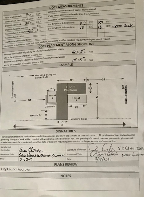 | Travis White Lot 59 | Boat Dock | August 31, 2020 | ACC Board | |||